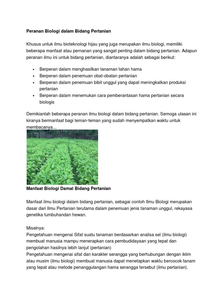Manfaat Mempelajari Biologi Di Bidang Pertanian Saat Ini, Dunia Pertanian Bukan Lagi Sebuah Dunia Dimana Orang Bisa Memandang Sebelah Mata.