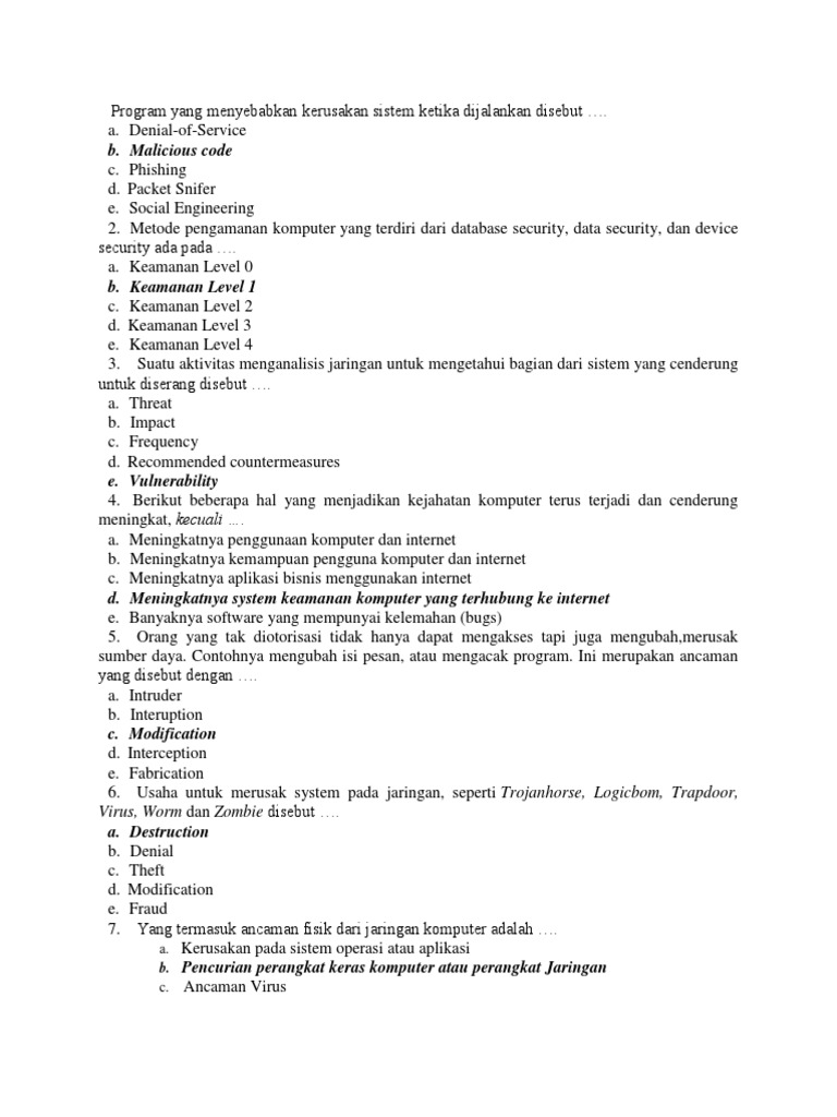 Metode pengamanan komputer yang terdiri dari database security, data security, dan. Mensyaratkan bahwa informasi tersedia untuk pihak yang memiliki wewenang ketika dibutuhkan adalah definisi dari. Disk memiliki resiko untuk mengalami kerusakan. Dari bahasa yunani κρυπτός kryptós, tersembunyi, rahasia; A keamanan level 1 b keamanan level 0 Seperti yang dijelaskan diatas, contoh sistem kelistrikan mesin adalah busi. Aspek implementasi yang sangat penting untuk rekayasa perangkat lunak: Keamanan level 0 keamanan level 1 keamanan level 2 keamanan level 3 keamanan level 4. Program yang menyebabkan kerusakan sistem ketika dijalankan disebut;