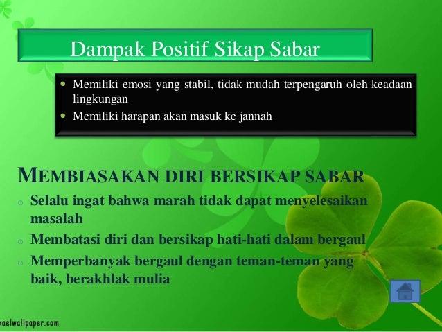 Sabar dari maksiat yaitu bersabar diri untuk tidak melakukan hal yang dilarang oleh agama. Pada hakikatnya, masalah gender adalah menganut prinsip, kemitraan dan keharmonisan meskipun dalam. Dan saat ini kita akan membahas dengan singkat seputar beberapa contoh dari akhlak yang terpuji yang bisa kita lakukan kepada sesama manusia. Pengertian dan pentingnya berilmu pengertian berilmu berilmu artinya pandai atau tidak bodoh, cerdas atau pintar. Berbeda dengan etika atau moral di luar islam yang hanya mengatur atau menekankan etika social (hubungan seseorang dengan orang lain dalam kehidupan bermasyarakat), akhlak dalam islam memiliki spektrum )ruang lingkup pembahasan) yang sangat luas.selain mengatur hubungan antar sesama manusia dalam kehidupan. Ppt akhlak terpuji kepada diri sendiri powerpoint presentation. Contoh akhlak terpuji terhadap diri sendiri. Yā mum³tu, yā hayyu, yā qayyūm, dan yā ahad (11 x atau lebih. Orang yang berilmu adalah orang yang memiliki ilmu pengetahuan, dan mau menggunakan akal sehatnya