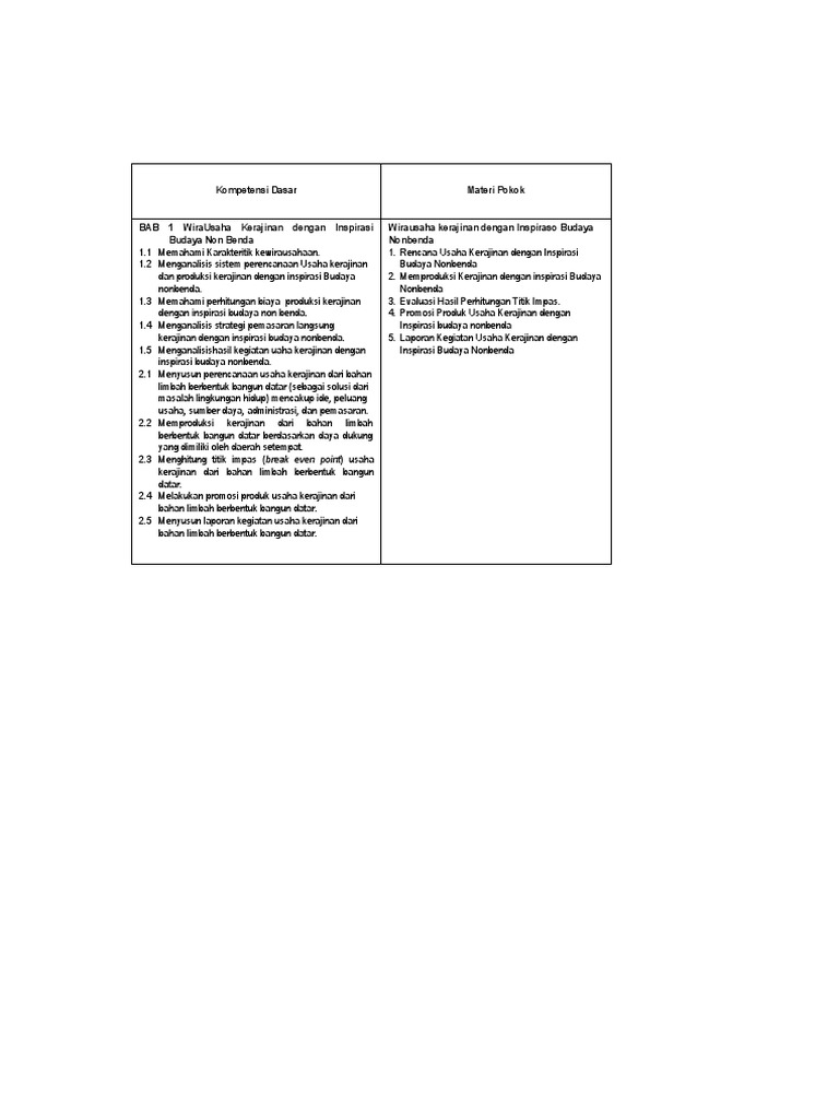 Kerajinan dari bahan limbah berbentuk bangun datar. Menganalisis laporan kegiatan usaha kerajinan dari bahan limbah berbentuk bangun ruang. Laporan kegiatan usaha kerajinan menganalis laporan produksi penerapan keselamatan kerja. Ide kewirausahaan adalah gagasan kreatifitas dalam menciptakan sesuatu yang baru dan berbeda dari yang lainnya sebagai sumber keunggulan untuk di jadikan sebagai peluang. Perencanaan usaha kerajinan dari bahan limbah berbentuk; Pengertian promosi usaha kerajinan dari bahan limbah berbentuk bangun datar. Laporan kegiatan usaha adalah penyampaian informasi sehingga tercipta komunikasi antara yang melaporkan dan pihak yang diberi laporan. Kegiatan menimbun limbah dan dijual ke sentra industry/ pabrik. Pengertian dan manfaat laporan kegiatan usaha kerajinan dari bahan limbah berbentuk bangun ruang.